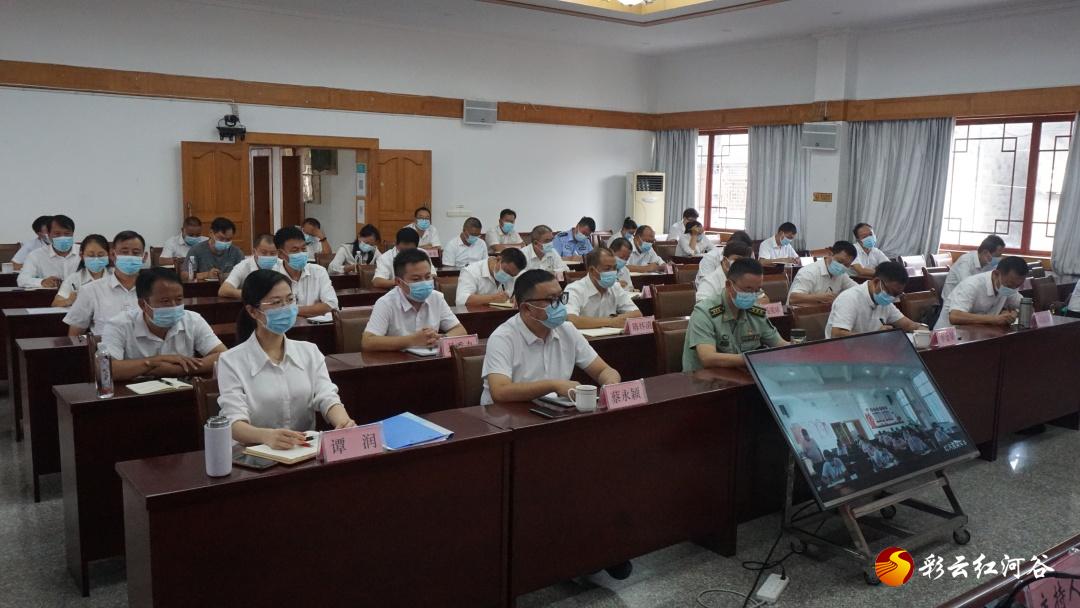 会议以视频形式召开。县委常委,县政府、县政协领导班子成员,县级有关部门负责人在县级主会场参会。各乡镇党政负责人,各站所和群团组织负责人,村党总支书记、驻村第一书记在乡镇分会场参会。