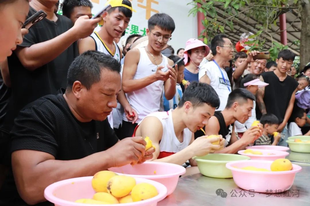 同时,一场趣味横生的“吃芒果比赛”正如火如荼进行着,来自各地的参赛选手激情满怀,拿起芒果大快朵颐,比赛现场欢呼声、加油声此起彼伏,大家在轻松愉快的比赛中与芒果来了一次“甜蜜的碰撞”,充分感受到了芒果丰收的喜悦。