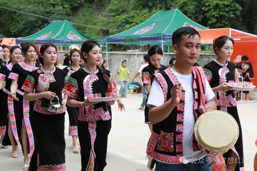 当天,傣族同胞们在村寨门敲锣打鼓,唱着迎客歌,跳着民族舞,端起美酒,热情迎接四方宾客。村民们一展歌喉,用动听的民族山歌传递对美好生活的向往和赞颂。游客们纷纷驻足,被这独具特色的傣家山歌对唱所吸引,现场好不热闹。