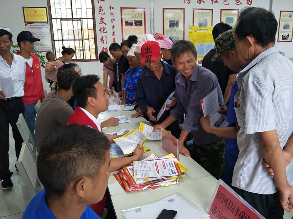 为助力脱贫攻坚、积极搭建劳务工序交流平台,提高劳务组织化程度的重要作用,红河县人力资源和社会保障局、县总工会、县团委、县妇联、红河县盛达人力资源公司于8月27日在红河县大塘子坡党员活动室组织举办了2019年劳动力转移就业护滇劳作协作现场现场招聘会。