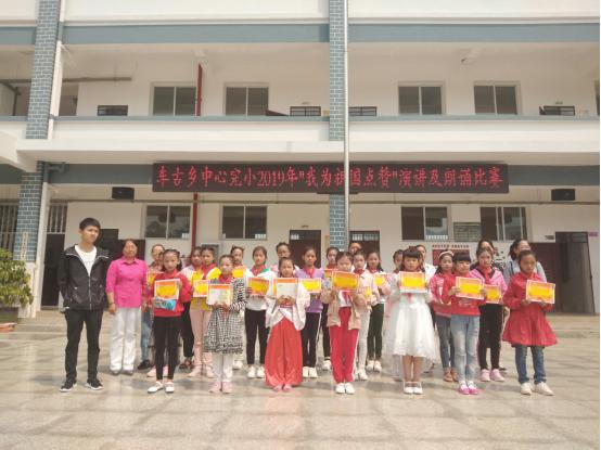 为迎接祖国70 华诞,庆祝改革开放40年,2019年4月26日上午9点,红河县车古小学组织全校师生开展了“我为祖国点赞”主题教育演讲及朗诵比赛。