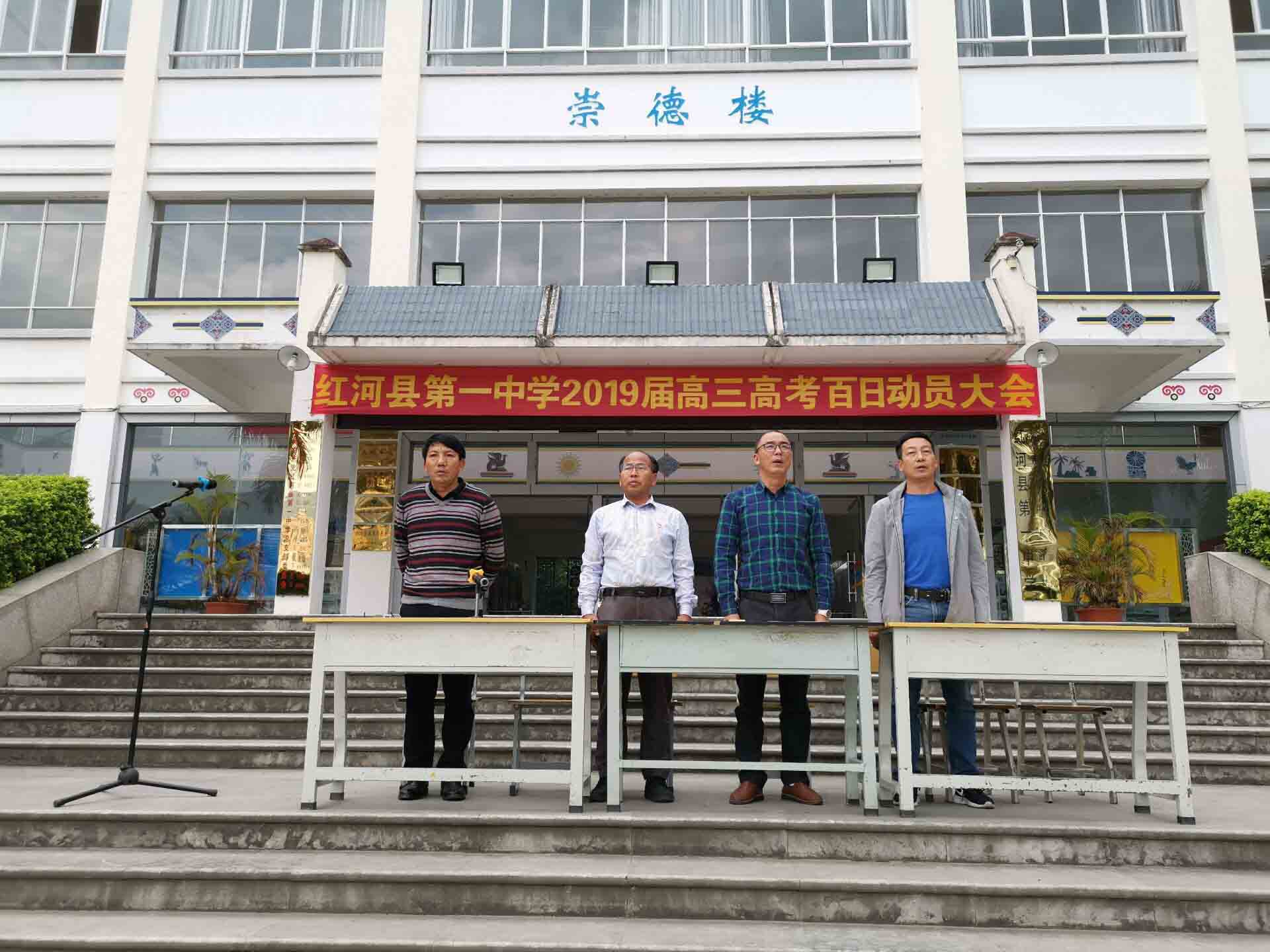为提高高三学生学习的积极性,增强迎战高考的信心,让大家以昂扬的斗志迎接高考,近日,距高考还有一百天的日子里,红河县第一中学高三全体师生齐聚崇德楼广场隆重举行高三年级百日动员大会,学校相关领导出席动员大会。