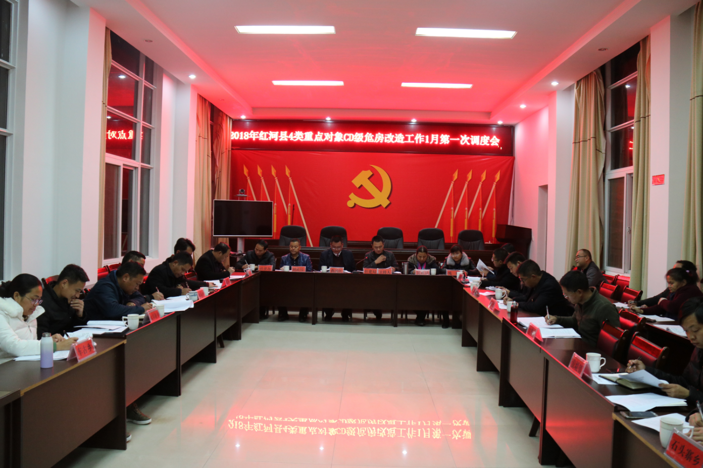 为加快推进红河县“4类重点对象”C、D级危房改造进度,确保按时、按质、按量完成改造任务, 1月10日,我县在住建局召开2018年第一次全县“4类重点对象”C、D级危房改造工作调度会。县委常委、常务副县长蒋国红;县财政局、县扶贫办、县住建局、县民政局、县残联主要领导;各乡镇党委书记、乡镇长;县住建局相关工作人员参会。 会上县住建局局长刘国甫传达红河州“4类重点对象”农村危房改造调度会精神,通报红河县“4类重点对象”C、D级危房改造工作进展情况、存在问题和下一步工作计划。他指出2017年我县C、D级危房改造工作虽然步履维艰,但最终完成任务,总结了宝贵经验,为2018年顺利推进开辟了一条道路。