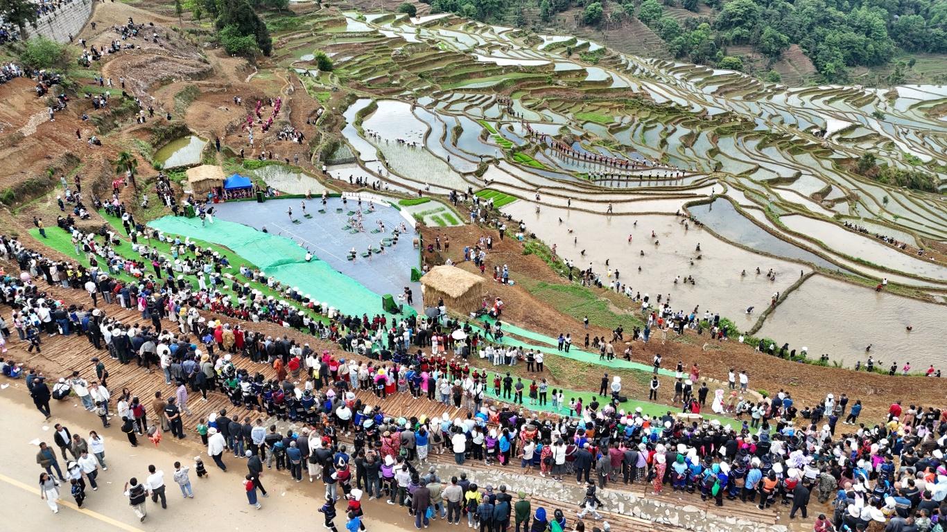 “开秧门”是哈尼族的传统农耕文化活动,寓意着一年农事的开始。在红河县甲寅镇十二龙泉梯田,哈尼族传统“开秧门”仪式正式开始,哈尼族人以田埂为舞台,山水为背景,展现独特的农耕文化。游客们不仅欣赏到了美丽的梯田风光,还亲身参与了插秧、抓鱼等的民俗活动,体验传统农耕的乐趣,感受劳动的快乐。