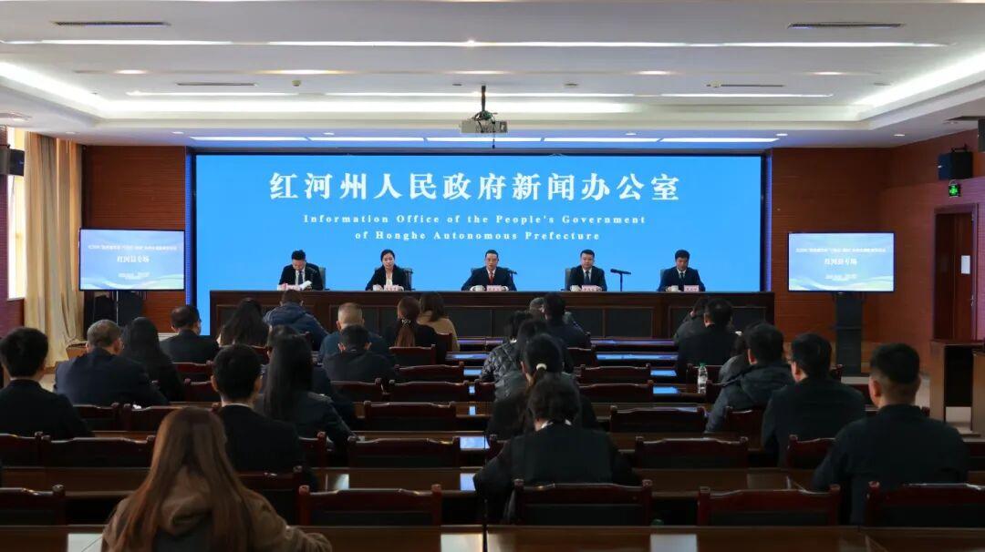 12月8日,红河州“高质量完成‘十四五’规划”系列主题新闻发布会红河县专场在蒙自举行。县委书记陈勇宏作主发布,并围绕生态文明建设等工作回答记者提问。