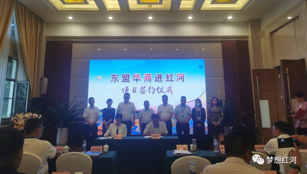 在蒙自市举行的“侨连五洲•七彩云南—第18届东盟华商走进红河”招商推介会上,副县长谭润向36名东盟华商代表推介了红河侨乡招商优势,诚邀华商来红河县投资考察兴业。同时,还与红河县宏玥建材有限公司签订《红河县年产3000万米精品石膏线项目投资协议》。