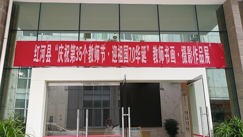 9月10日,为庆祝新中国70华诞,弘扬新时代尊师风尚,在第35个教师节到来之际,红河县教体局在县游客中心举办了一场以“弘扬爱国奋斗精神、建功立业新时代”为主题的“庆祝第35个教师节,迎祖国70华诞”教师书画、摄影作品展,共展出了113件精美作品,活动从9月10日开始,延续到9月17日结束。