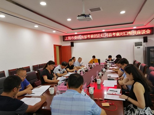 2019年7月27日,上海市委统战部考察团一行6 人,在红河州卫生健康委副调研员张国防、州委统战部侨务工作科科长赵元军陪同下深入我县考察对口帮扶工作,并召开座谈会。红河县委常委、县人民政府副县长郎文浩,县人民政府副县长刘勇,县委统战部、县卫健局相关领导陪同考察并参加座谈会。
