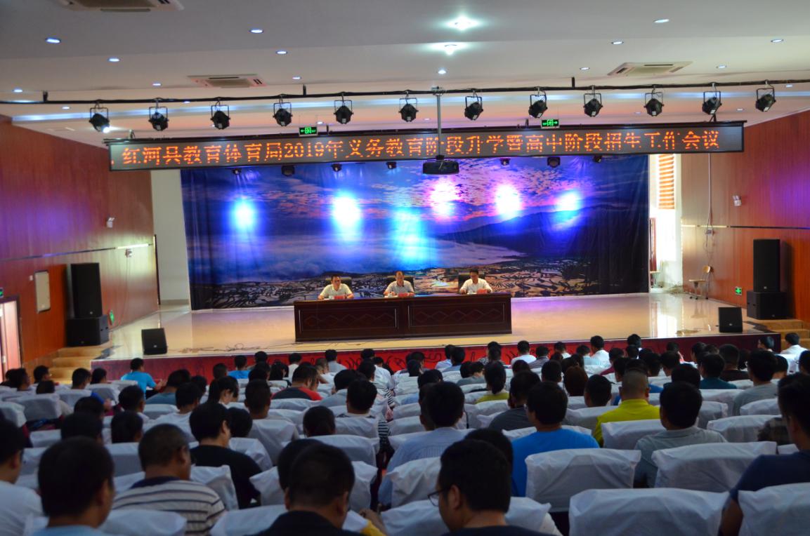 8月15日,红河县教育体育局在县委党校报告厅召开了2019年义务教育阶段升学暨高中阶段招生工作会议,助推教育扶贫工作。全县各中小学校长、副校长、教务主任,局机关干部职工及局长和相关副局长150人参加会议。会议由教体局党组书记、局长郭朋飞主持。