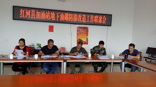 为确保2020年底前,完成全县加油站地下油罐防渗改造任务。依据《红河州环境污染防治工作领导小组关于加快推进加油站地下油罐防渗改造工作加强加油站水污染防治工作的通知》要求。10月26日,县环保局、工信局、安监局等相关部门在环保局四楼会议室召开了联席会。