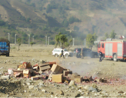 春节将至,烟花爆竹进入销售旺季,为有效遏制烟花爆竹安全事故的发生,打击非法违法经营行为。1月25日,由县安监局、县公安局、县消防大队、县生资公司等单位联合,将2017年以来收缴的假冒伪劣烟花爆竹进行集中销毁,共销毁爆竹341件、礼花46颗,价值5万余元。
