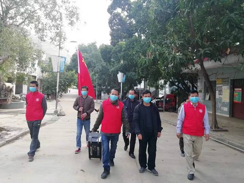 安邦村侨属(爱心人士)卢萍将100只口罩递到廖主任手上,说:“感恩你们的付出与坚守,一定要加强自身防范措施,保护好自己的身体健康!”