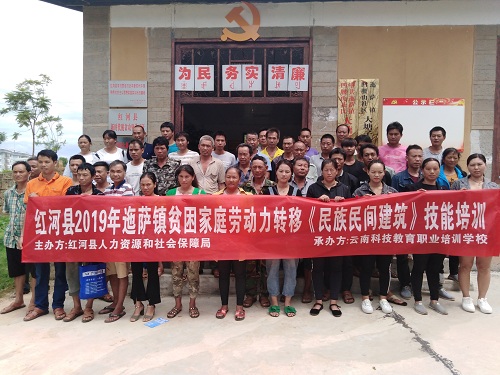 为解决贫困家庭劳动力就业问题,提高就业能力,增加收入,减轻生活负担,近日,由红河县人力资源和社会保障局主办,云南科技教育职业培训学校承办的为期一周贫困家庭劳动力转移(民族民间建筑)技能培训班在迤萨镇大塘子坡新村举办,3个社区,7个村委会共100余人参加培训,培训以分班式进行。