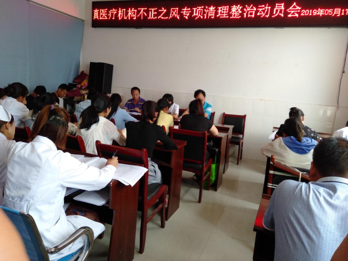 为认真贯彻落实县委、县政府、县卫健局医疗卫生行业不正之风清理整治专项行动动员会议精神,有序推进我院医疗卫生行业不正之风清理整治专项行动,5月17日下午,在卫生院二楼会议室召开了全院医疗卫生行业不正之风清理整治专项行动动员会。镇党委副书记,镇纪委书记我院全体干部职工和全镇乡村医生共计65人参会。