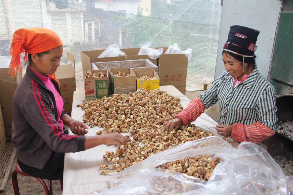 随着巴西菇的丰收,巴西菇初加工厂应运而生,目前已正式投入运营。该厂每天吸纳5至7名建档立卡贫困户,对收到的新鲜巴西菇进行初加工,并按品质进行分类,全部包装外销,种植户日均收入4800至8000元。
