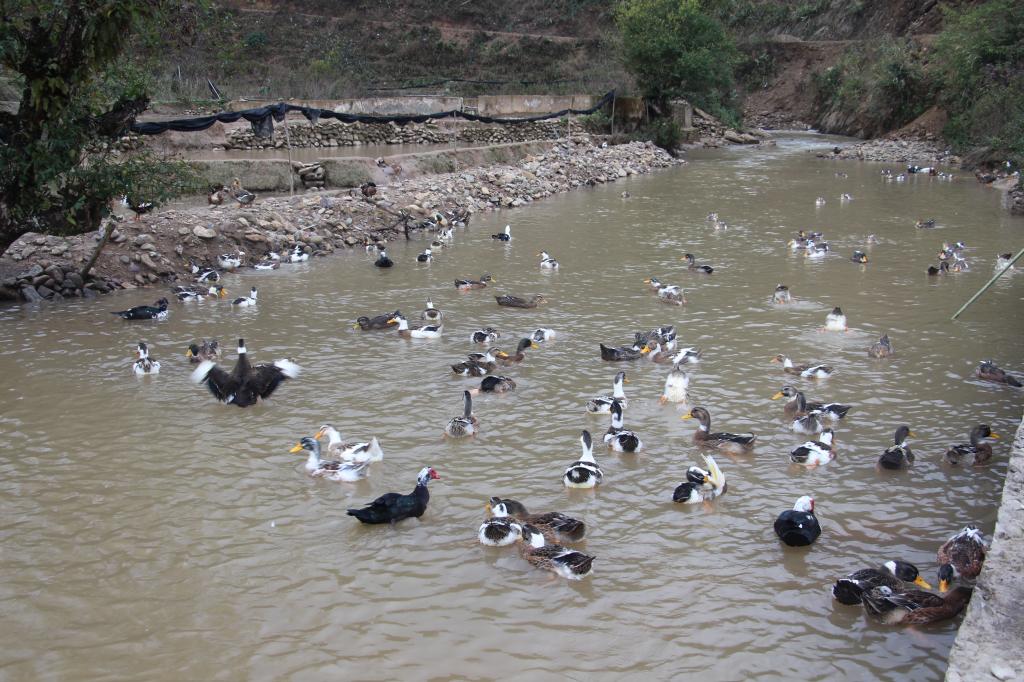 该乡按照“一村一品”“人无我有、人有我优”的发展思路,利用腊咪河丰富水源、村民素有鸭子饲养经验等有利条件,在千只鸭生态养殖基地原有棚架、水域等资源的基础上,实施提升改造,进一步优化养殖环境,变“零星养殖”为“规模养殖”,为规模化、集约化产业发展,试水探路。