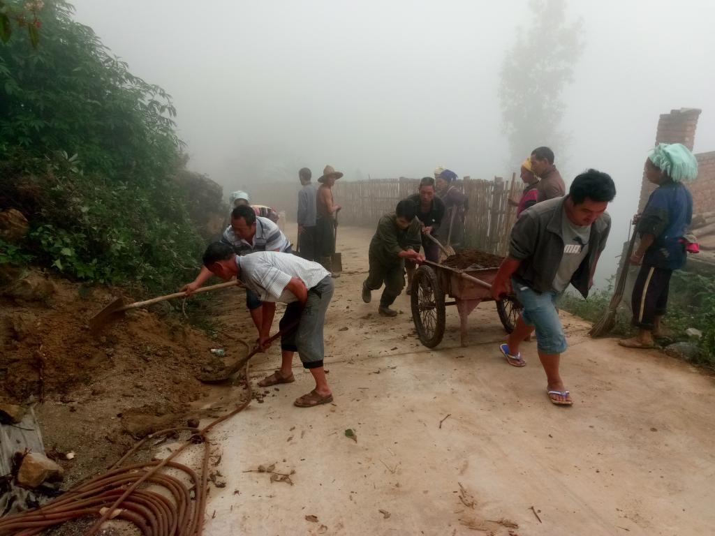 5月6日上午,石头寨村委会入村道路上,鲜红的党旗下,40余名基层党员、干部挥锄抬铲、挥刀抬帚、挖沟捞土、铲粪清污,大家个个卖气奋力,手上的家伙不停,甩开膀子进行环境卫生大整治。经过4个多小时的努力,一条干净整洁长2公里的入村道路像欲出嫁刚装扮好的新娘呈现在大家的眼前。“扫得真干净呀!”一个背上背着小孩的中年妇女指着刚打扫好的路面用哈尼话与正在清扫的党员们打招呼,脸上流露出赞许的表情。“我看你的手”,有的党员伸出手掌,满手竟是血泡。直到太阳最辣的正午时分,大家却没一个偷懒,依然埋头苦干。清扫过程中,路过带车兜的司机们也不约纷停下车来帮着运送清理出的垃圾,这真是一个美好的上午,在基层党员干部的先锋模范作用下,人间的正能量如同和悦的春风吹遍大地。“干净得可以晒谷子啦!”党员们擦试着脸上流下的汗水,欣慰地说。这只是石头寨乡环境卫生整治行动的一个缩影。