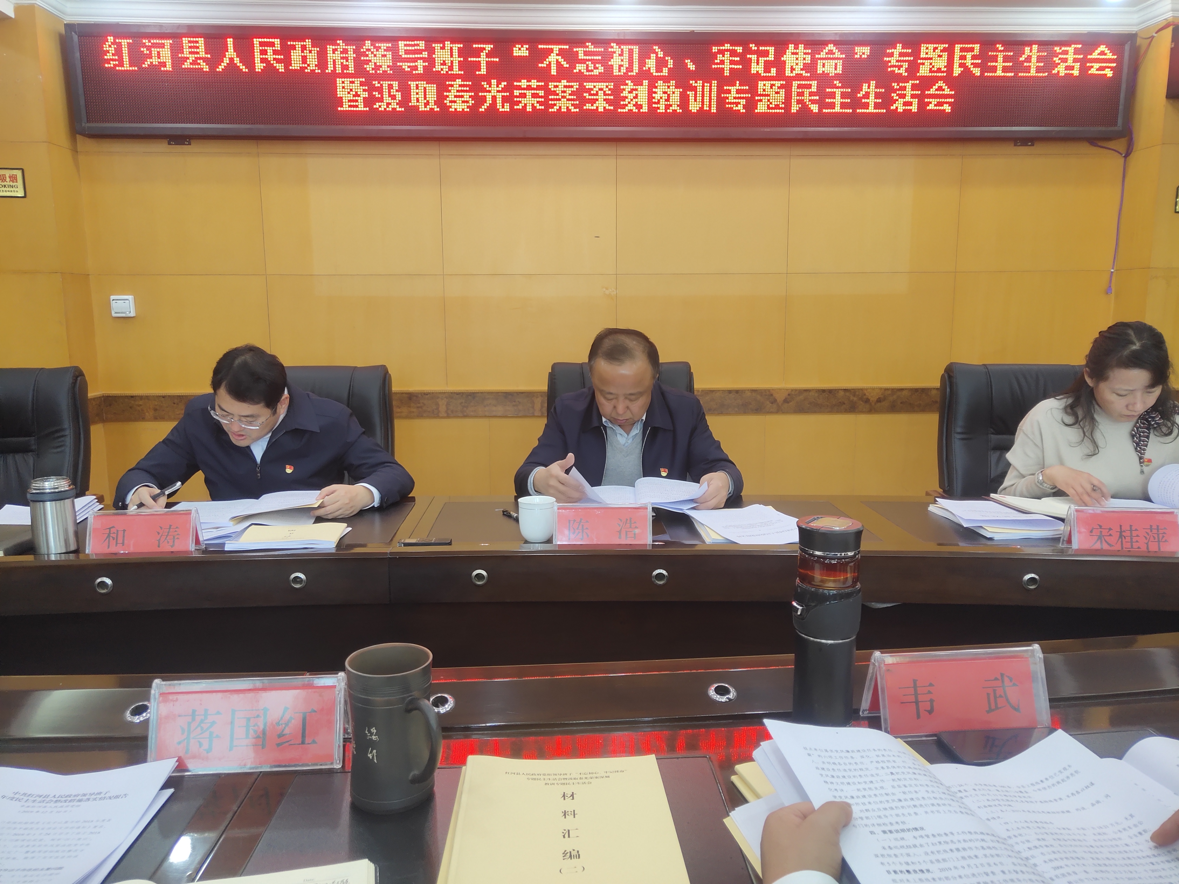 12月10日,按照关于主题教育工作部署要求和州纪委、州委组织部的通知要求,县人民政府党组班子召开“不忘初心、牢记使命”专题民主生活会暨汲取秦光荣案深刻教训专题民主生活会。会议深入学习贯彻习近平新时代中国特色社会主义思想,聚焦“不忘初心、牢记使命”主题和深刻汲取秦光荣案教训主题,进行班子及个人对照检查,开展批评和自我批评,盘点收获、检视问题、深刻剖析,以严实的作风做好政治体检和深刻的党性分析,推动政府党组班子和班子成员自身建设,以良好的政治生态推进红河高质量跨越式发展。