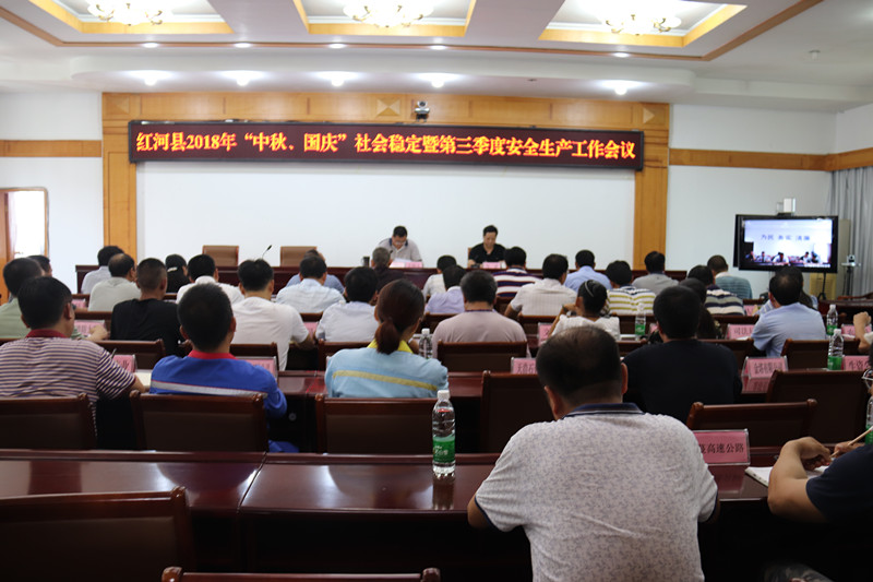 2018年9月14日,红河县召开2018年“中秋国庆”社会稳定暨第三季度安全生产工作电视电话会议,红河县委常委、常务副县长蒋国红主持召开本次会议,红河县副县长、公安局局长韦武以及县直各部门、各乡镇的主要负责人参加了会议。