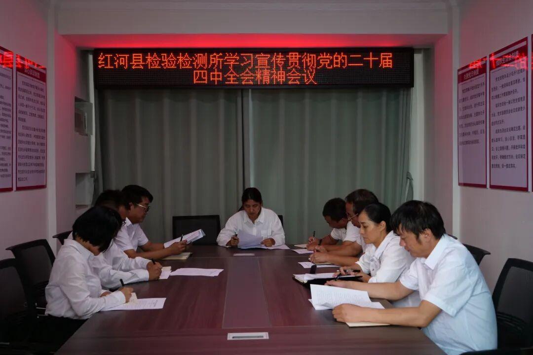 10月31日,红河县检验检测所召开专题会议,集中学习党的二十届四中全会精神。会议强调,要将学习贯彻全会精神作为当前和今后一个时期的重大政治任务,自觉把思想和行动统一到全会精神上来,坚定拥护“两个确立”,坚决做到“两个维护”。全体干部职工要以全会精神为指引,立足岗位、担当作为,强化作风建设,严守纪律规矩,切实把学习成果转化为推动检验检测工作高质量发展的实际成效。与会人员表示,将紧密团结在以习近平同志为核心的党中央周围,聚焦全会目标任务,以昂扬斗志和务实作风,在各自岗位上团结奋斗,为红河县高质量发展和中国式现代化新征程贡献力量。