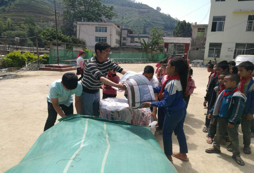 2018年5月初,州安监局派驻架车乡架车村委会扶贫工作队员与红河县环保局派驻架车乡妥产村委会扶贫工作队员交流学习时得知,妥产小学因宿舍紧缺,住校生只能在教室住宿,条件较差。州安监局驻村扶贫工作队员便主动联系“2+2志愿者行动”组织,成功获得2位爱心人士热心捐赠,其中:褚俊东先生捐赠100套住校生棉被、钟焜全先生捐赠2个电风扇。2018年5月10日,州安监局驻村扶贫工作队员及县环保局驻村扶贫工作队员共同将捐赠物资交付给架车乡妥产小学。