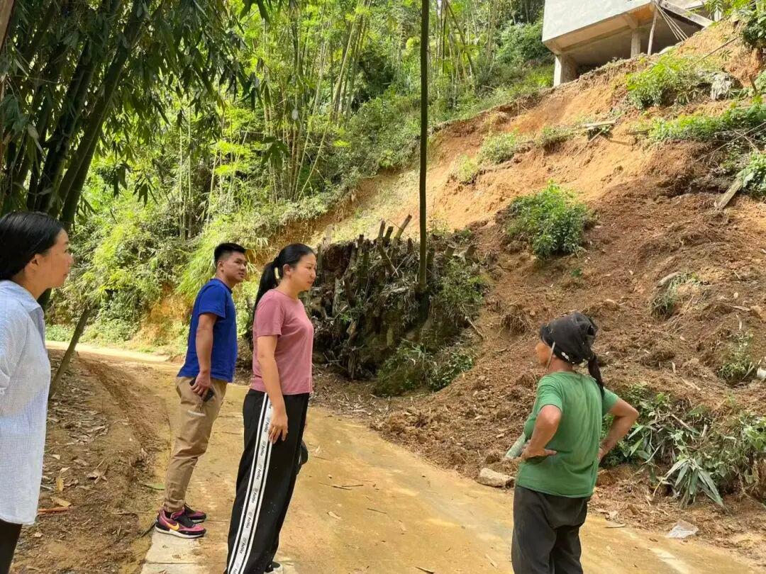 以村级网格为单元,组织网格员、党员志愿者与独居老人、伤残人士结成“一对一”帮扶对子,开展“敲门行动+贴心服务”。逐户提醒村民提前加固门窗、转移阳台易坠物品,重点帮助独居老人、残疾人家庭整理应急物品、规划避险路线;同步对辖区内河道堤坝、电力通信线路、灌溉水渠等基础设施进行巡查,及时清理河道内枯枝、杂物等堵塞物,清理树枝、石块等路障。累计排查地质灾害点23处、共发现房屋滑坡隐患10户、公厕1座,安全转移群众9户35人。累计完成6处道路清理并恢复通行;对2处滑坡路段,及时铺设防水布防止雨水进一步侵蚀边坡;在3处道路塌陷、边坡溜方等危险地段,迅速拉设警戒线、设置警示标识,安排专人轮班值守,提醒过往群众与车辆绕行。