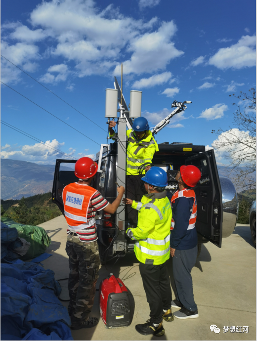 红河移动应急通信车驰援现场开展网络维护保障工作