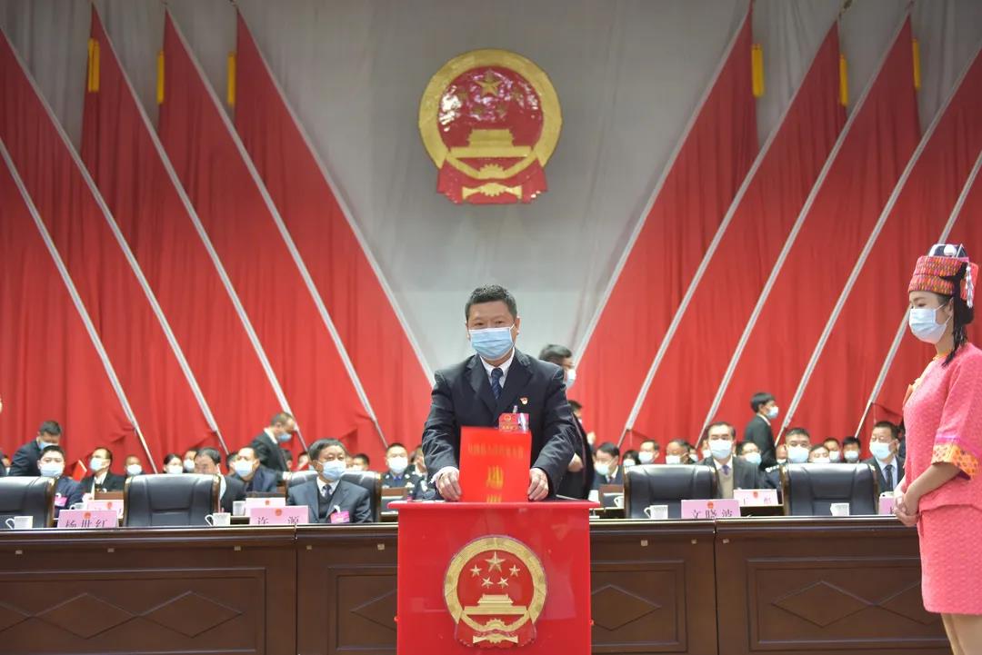陈勇宏主持宪法宣誓仪式,当选的县级国家机关领导人员向宪法进行了庄严宣誓。