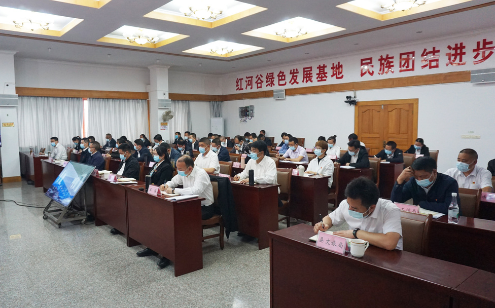 县委常委、常务副县长李树锋主持会议。县委常委钱真全、苏玲莉、李继深、王猛、易国清、苏庆劼在县级主会场参会,各乡镇设分会场参会。