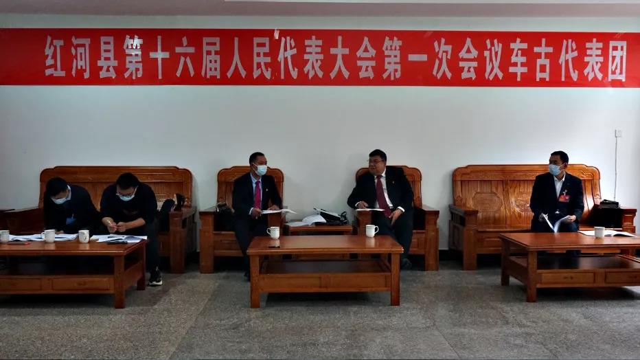 1月15日,红河县第十六届人民代表大会第一次会议举行代表团会议。县委副书记、县长文晓波参加车古乡、浪堤镇代表团讨论。