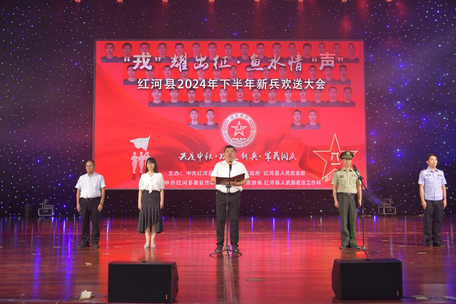“共度中秋,欢送新兵,军民同庆”。9月16日,红河县举行2024年下半年新兵欢送大会。县委副书记、县长文晓波出席活动并致欢送词。县委常委、县人武部上校政治委员刘秋雄主持。
