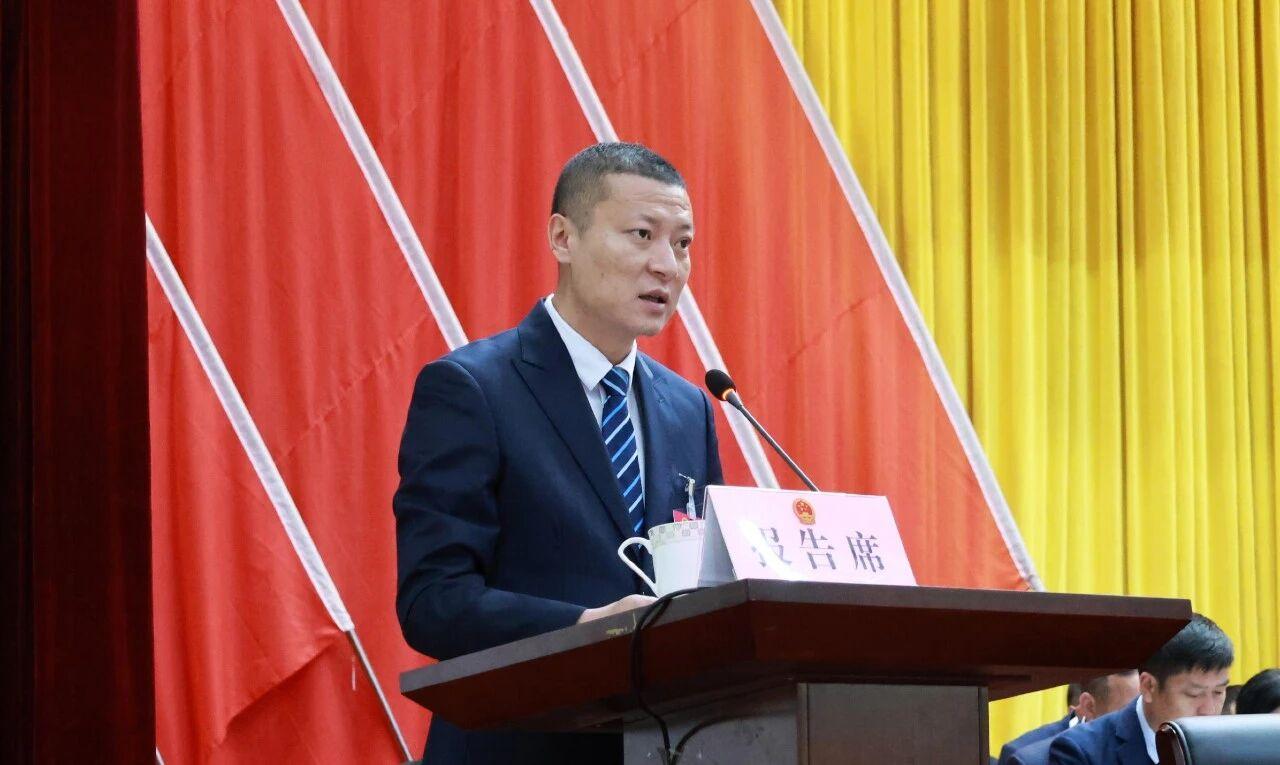 李钢代表县人民政府向大会作政府工作报告。