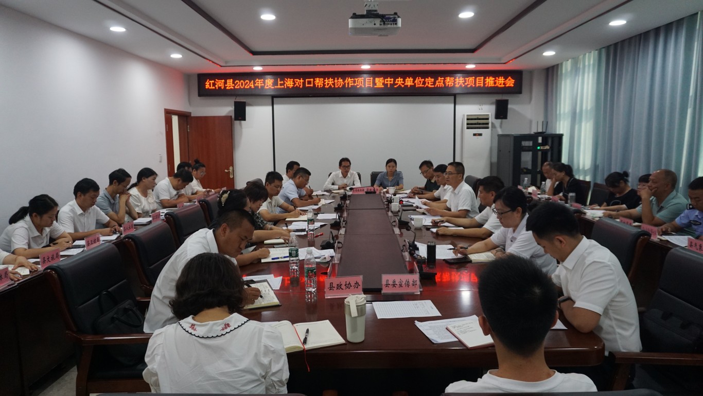 5月30日,红河县召开2024年度上海对口帮扶协作项目暨中央单位定点帮扶项目推进会。县委副书记杨杰,副县长陈轶南、潘崇寺、邢一山,县级相关部门及项目实施乡镇主要负责同志参加会议。