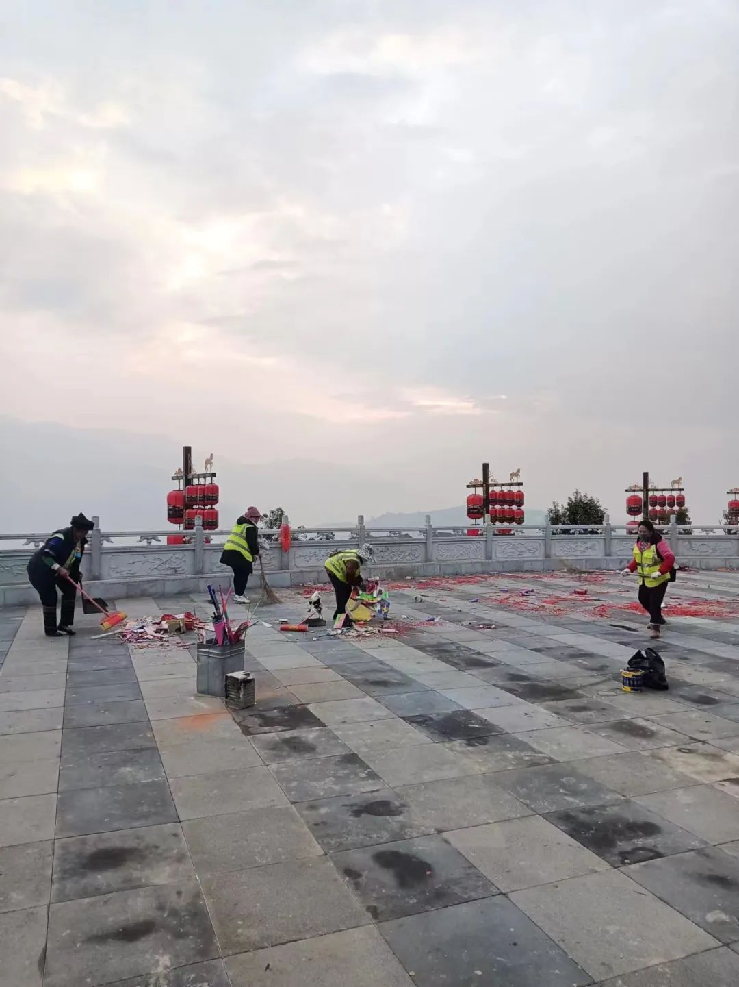 热闹了一夜的迤萨古城逐渐安静了下来,各城区主次干道、马帮古城、小花园等烟花爆竹燃放较多区域,到处都是燃放过的烟花爆竹垃圾。为让大家过一个干净舒心年,他们一大早就对城区进行全方位排查并及时清除,全力保障“春洁”。