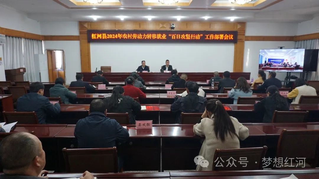 1月5日,红河县召开2024年农村劳动力转移就业“百日攻坚行动”工作部署会议。县委副书记杨杰,县政府副县长石家强,县委办、县政府办等县级有关部门负责同志参加会议,各乡镇设立分会场参加会议。