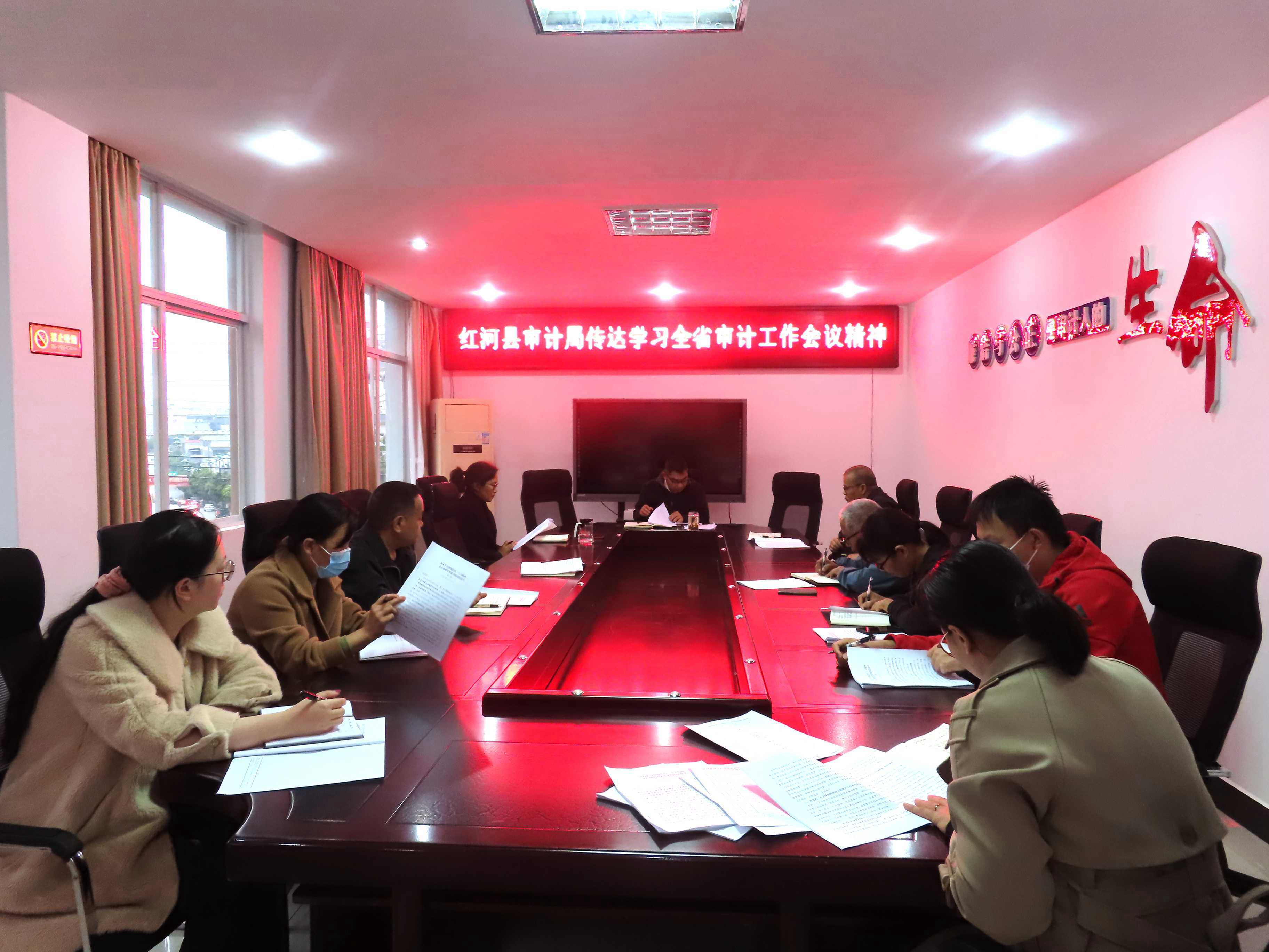 2月21日,红河县审计局召开专题会议,传达学习2023年全省审计工作会议精神,研究贯彻落实措施。局党组书记、局长周然三主持会议并领学,全体干部职工参会。