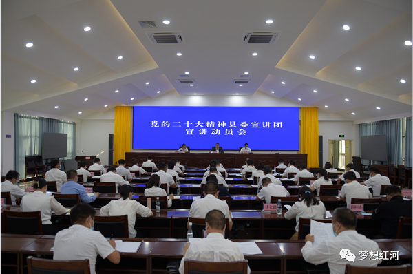 11月25日,红河县召开党的二十大精神县委宣讲团宣讲动员会。县委书记、县委宣讲团团长陈勇宏作动员讲话时强调,精心组织、讲出实效、讲出特色,全面推动党的二十大精神在红河县落地生根、开花结果。