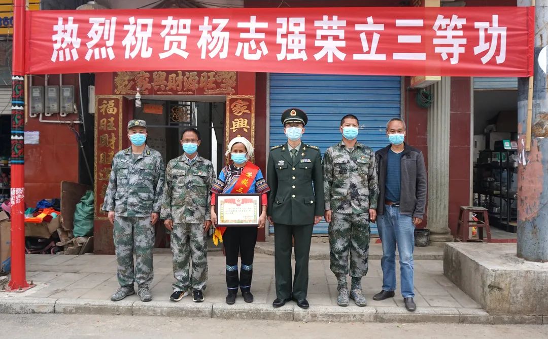 喜报承载着军人的辛勤汗水和无私奉献,也凝聚着军属的大力支持和默默付出。在洛恩乡草果村委会朋洛村和石头寨乡石头寨村,慰问组分别将部队颁发的三等功喜报送到军人李胞民、杨志强家中,为军属戴上光荣绶带,并送上由衷的敬意和祝福。