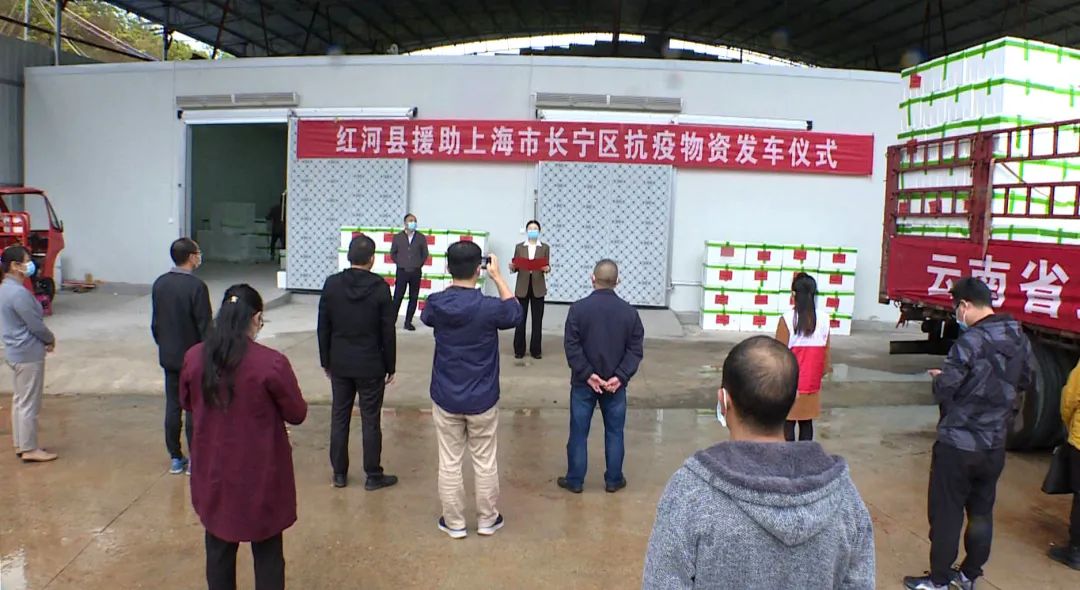 经过一天一夜的努力 ,4月1日早晨,红河县举行援助上海市长宁区抗疫物资发车仪式。县委常委、副县长郎文浩主持仪式,县属相关单位负责同志参加。