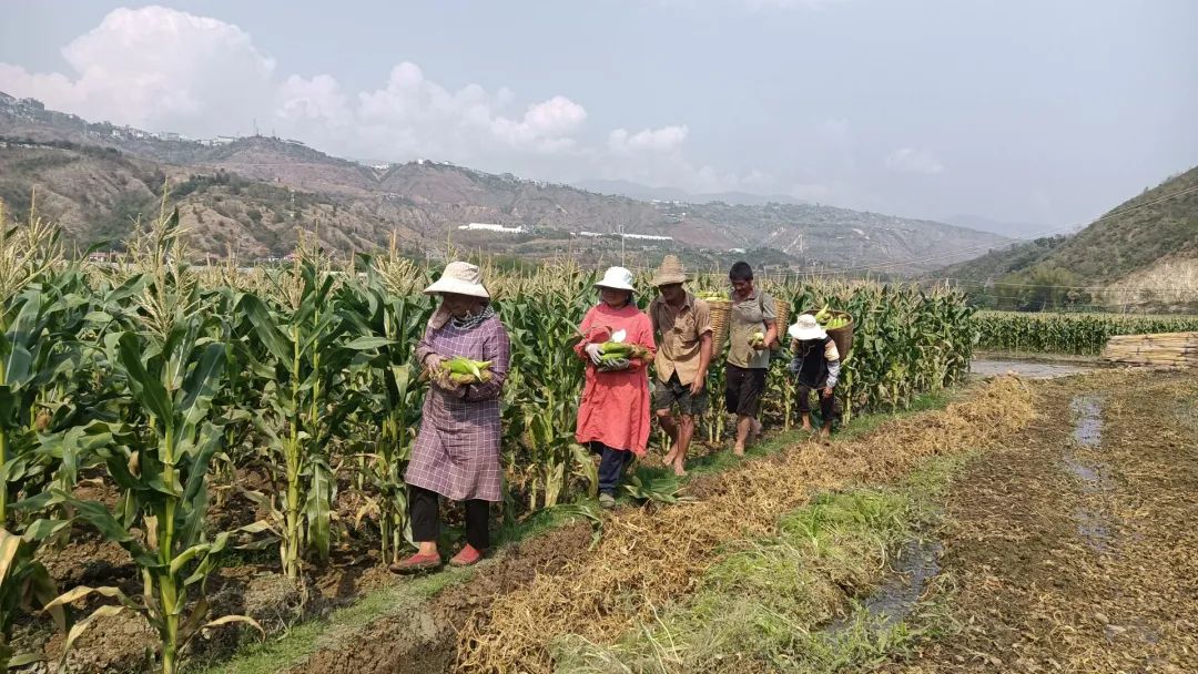 3月31日下午,记者来到红河县迤萨镇勐龙村冬早蔬菜种植地里,看到村民们正在田野上忙着采收冬早玉米,并将刚从地里采收的玉米一一装好,等待运输车运到冷库统一包装后送往上海市长宁区。