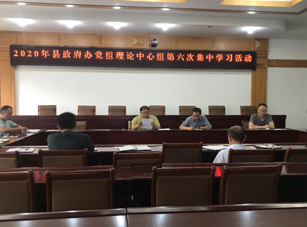8月13日,县政府办党组理论学习中心组举行2020年第六次集中学习活动,传达学习相关文件精神。县政府办党组书记、主任刘泽民主持会议,全体干部职工20余人参加会议。