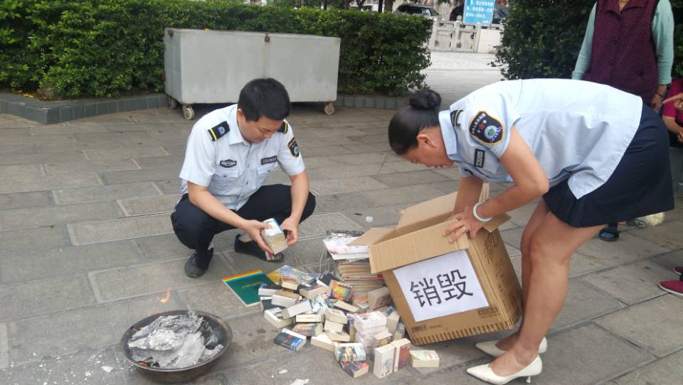4月23日,县文化和旅游局在县小花园广场场开展非法出版物集中销毁活动,对90余册非法图书进行集中环保销毁。