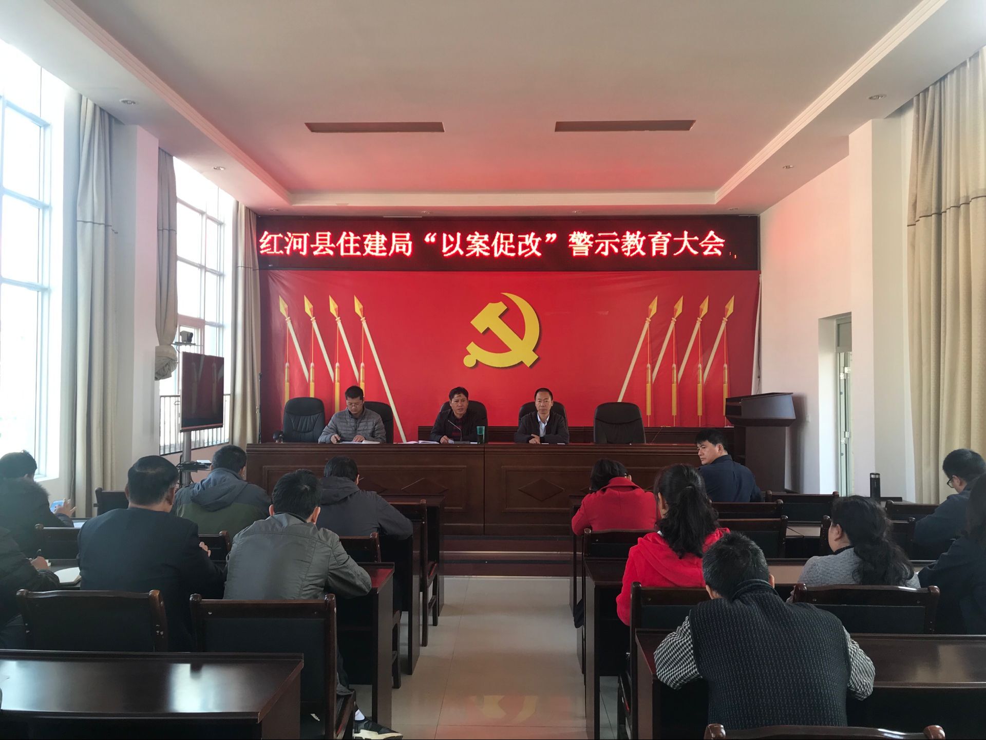 12月13日,县住建局召开 “以案促改”警示教育大会,全局干部职工参加会议。党组书记、局长张卫国宣读了《红河县住房和城乡建设局以案促改工作方案》,并对我局发生的典型案例进行了深刻剖析,用发生在身边的案例教育干部职工遵规守纪,教育党员干部树立规矩意识、廉政意识、责任意识。