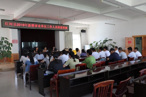 9月17日,红河县人社局举办了2019年新招聘事业单位工作人员岗前培训,对新招聘的20名事业单位工作人员进行岗前培训,培训内容涉及职业道德行为规范、职业归属感和认同感、法律法规知识、禁毒健康教育、防治艾滋病、安全生产和保密知识等,旨在提高新招录工作人员自身素养的同时树立良好的职业道德,在今后工作中积极汲取新知识,开拓视野增长才干,遵守法律法规的同时更好地履职尽责。培训结束后,新招聘事业单位工作人员将奔赴新的工作岗位,这也标志着红河县2019年公开招聘事业单位工作人员工作圆满结束。