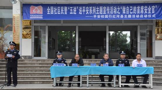 据了解,按照公安部教育部通知,2018年3月至2019年1月,全国范围统一部署开展“做自己的首席安全官——平安校园行”主题宣传活动。红河县委县政府高度重视,仪式启动后,将按照县委县政府部署在全县统一组织宣传活动,并向全县各乡镇全面展开。