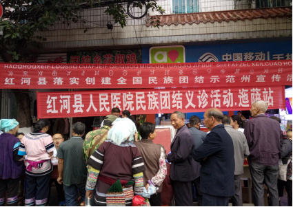 5月3日上午,该院在县创建办的组织下设点在跑马路农贸市场门口开展了民族团结义诊活动。此次活动吸引了过往的群众积极参与,他们为群众提供了测血压、测血糖等一般常规健康检查,内科、外科、五官科、妇产科、康复科有经验的医师现场为群众进行了健康咨询服务和用药指导及康复训练指导。活动中,为群众免费发放水杯、围裙、手提袋、宣传折页、健康教育处方共400余份,测血压60人、测血糖28人、义诊咨询健康指导37人,通过义诊宣教大力弘扬了民族团结大发展、大繁荣的主旋律,引导广大人民群众牢固树立汉族离不开少数民族、少数民族离不开汉族的思想观念,从而推动全县民族工作发展,不断增进民族团结,促进社会和谐。