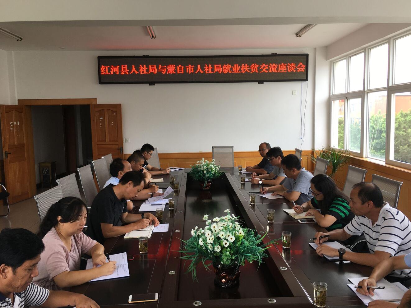 为更好推进农村劳动力转移就业扶贫工作,2018年8月9日,蒙自市人社局局长陈旭带领分管扶贫工作副局长及就业中心负责转移就业工作相关人员到红河县人社局交流农村劳动力转移就业扶贫工作,红河县人社局副局长马志华以及班子成员、相关股室负责人参加座谈交流。