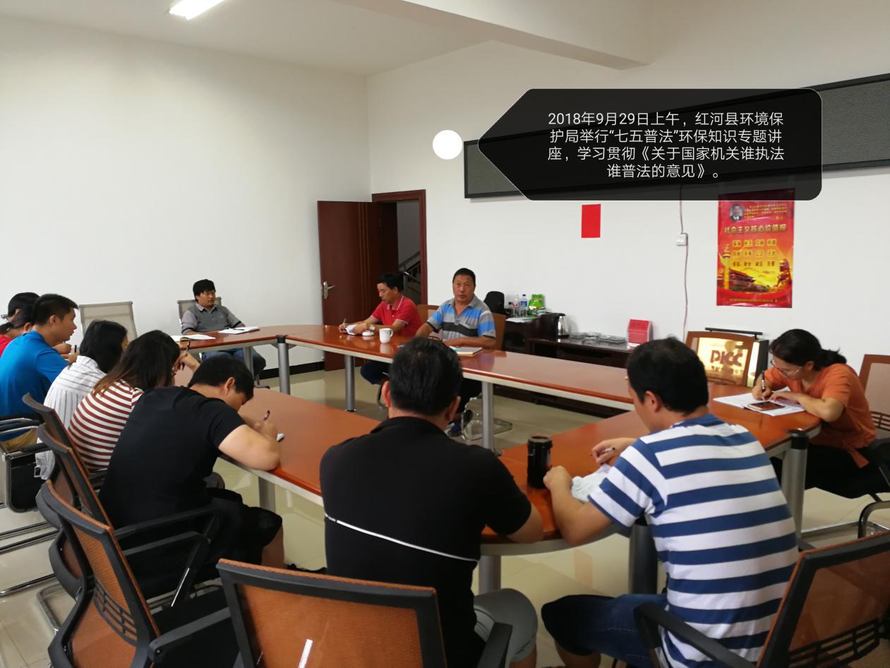 2018年9月29日上午,红河县环境保护局在局四楼会议室开展2018年“七五普法”环保知识专题讲座,学习贯彻《关于国家机关谁执法谁普法的意见》。