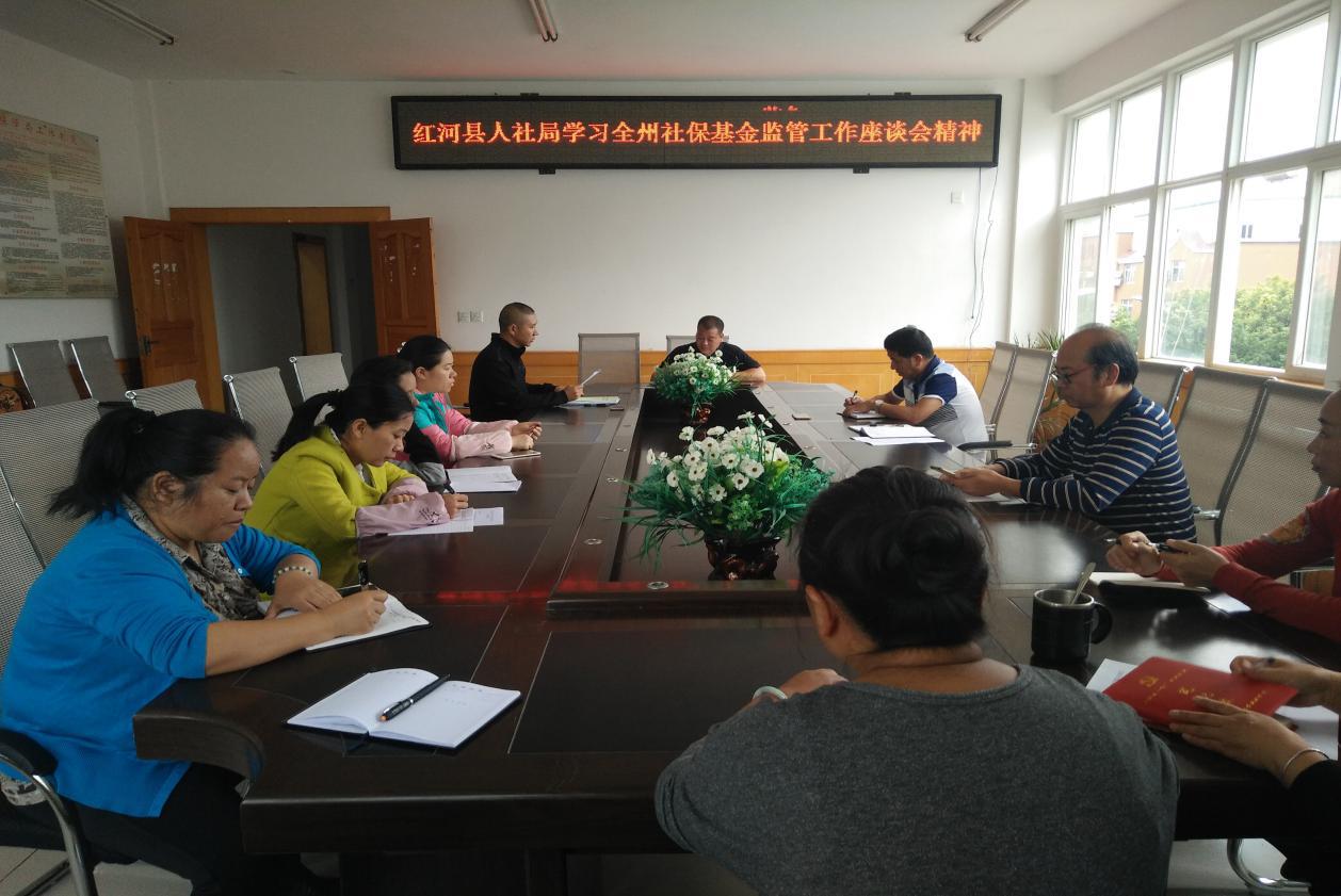 为深入贯彻落实2018年全州社保基金监管工作座谈会议精神,及时抓好有关工作落实。11月13日,红河县人力资源和社会保障局召开会议,传达学习全州社保基金监管工作座谈会议精神。局领导班子成员、相关股室成员参加学习。