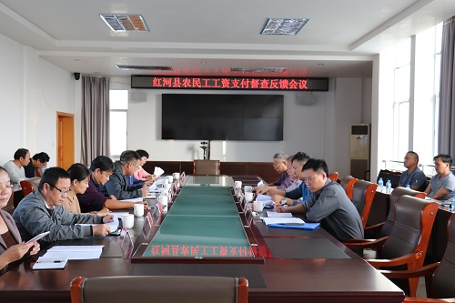 11月22日, 州人社局副局长白志光、州水利局领导一行到红河县开展农民工工资支付工作督查,红河县委常委、常务副县长蒋国红,县人社局、县水务局相关领导陪同。